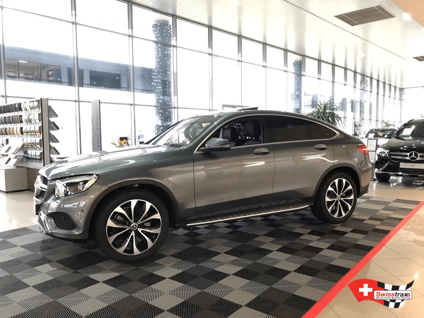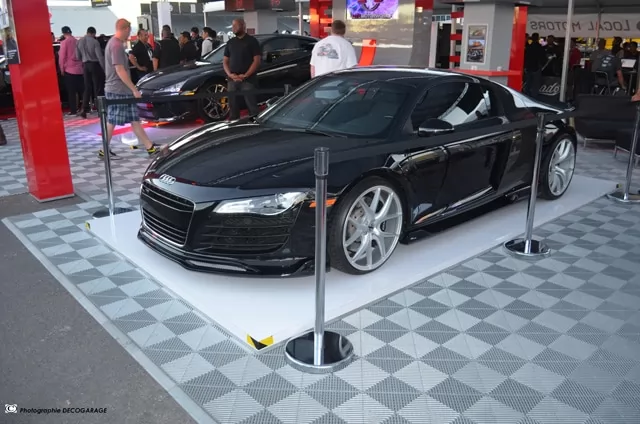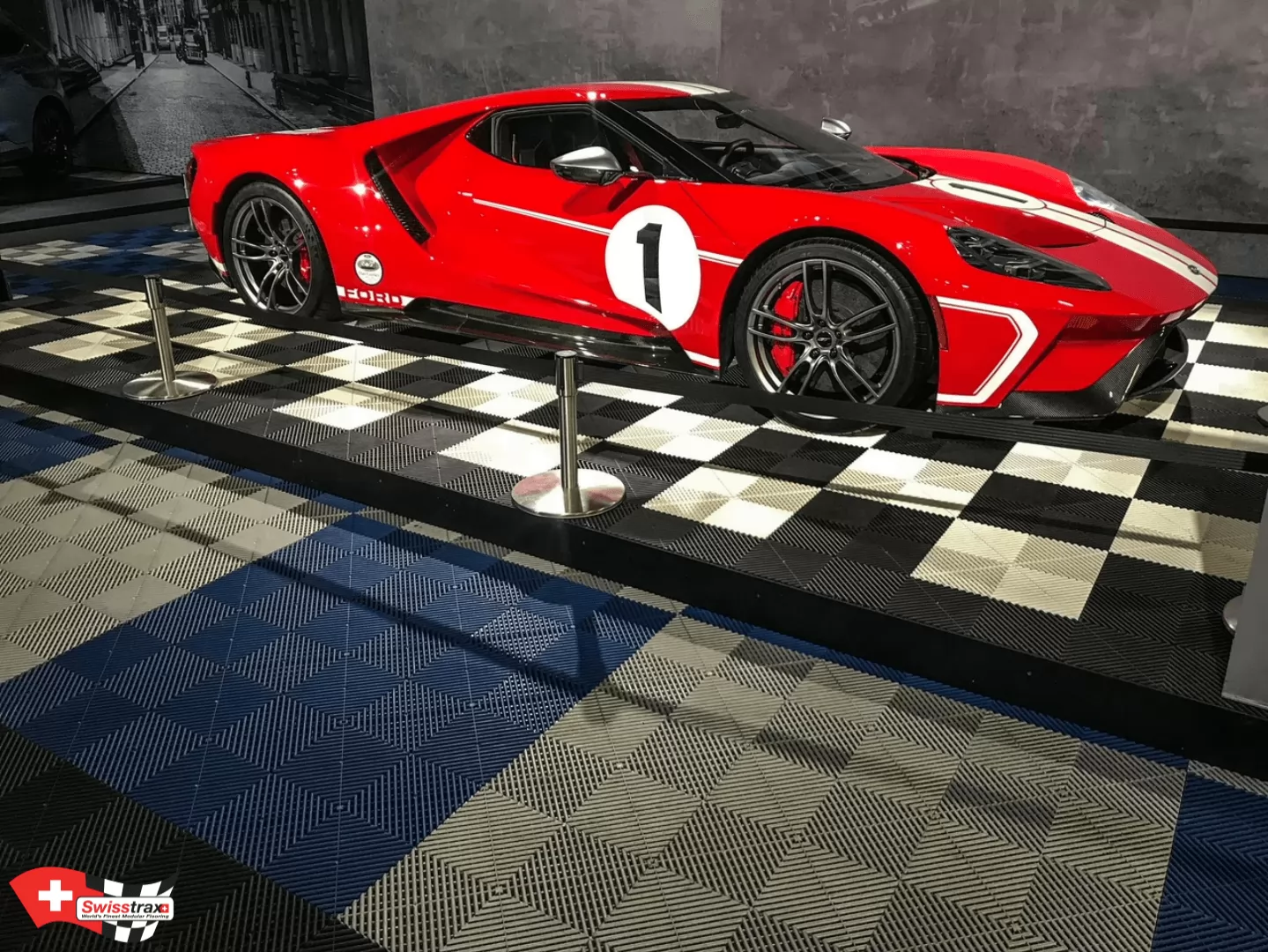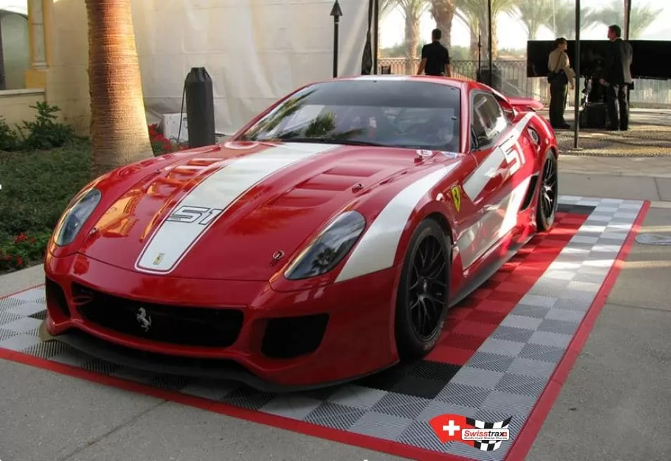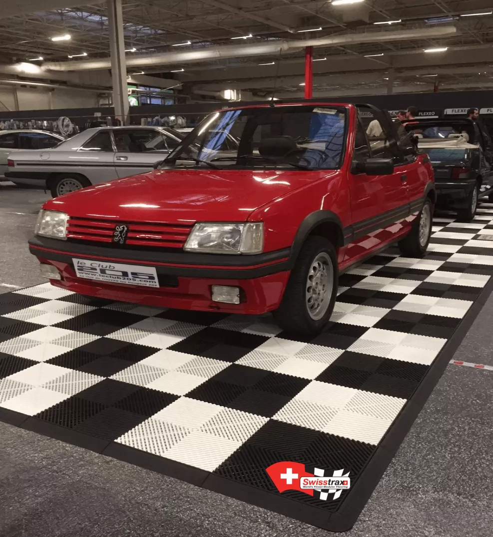 Dieses Fahrzeugpodium kann auch als Parkplatz in Ihrer Garage genutzt werden. Sie haben eine sehr große Garage und wollen nur den Platz für Ihr Fahrzeug schaffen? Die Modularität der Swisstrax-Platten erlaubt es Ihnen, den Raum und die Grösse Ihrer Wahl zu gestalten. Die Platten werden einfach zusammengesteckt. Für ein außergewöhnliches Design und einen sicheren Zugang zu Ihrem Fahrzeugraum werden Abschlusskanten empfohlen. Das Logo Ihrer Lieblingsmarke oder Ihres Lieblingsunternehmens kann auch auf Ihrem Boden angebracht werden.