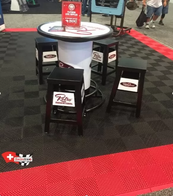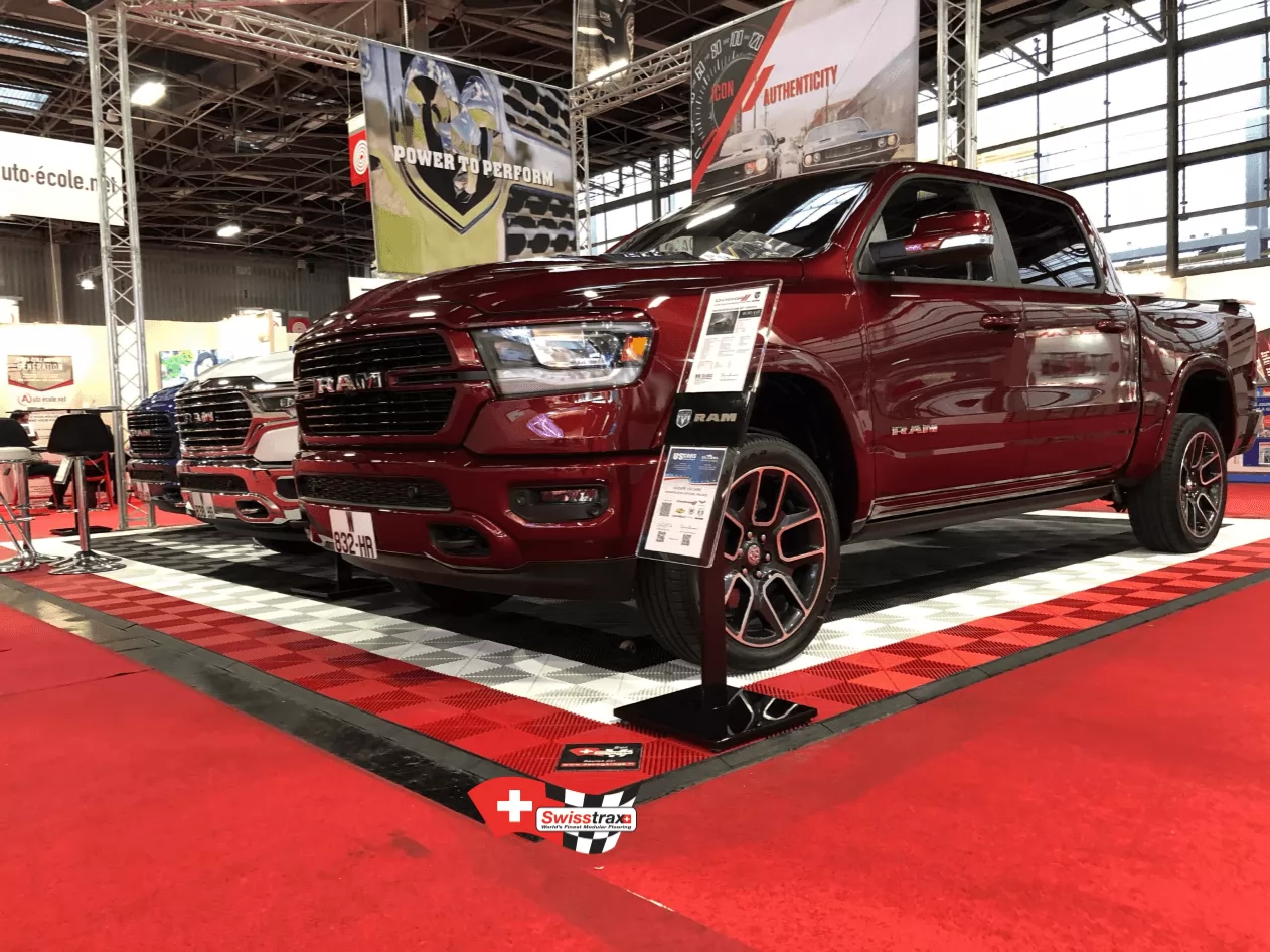 Bei einer Messe oder einem professionellen Event verbringen Ihre Teams in der Regel viele Stunden im Stehen. Genau wie Ihre Besucher, die kommen, um Ihre Fahrzeuge zu beobachten und mit Ihren Messestandbetreuern zu interagieren! Um dieser Situation abzuhelfen, bietet das Swisstrax-Bodensystem maximalen Komfort für die Füße und schafft ein Gefühl des Wohlbefindens. Ihre Kunden werden niemals gehen wollen!