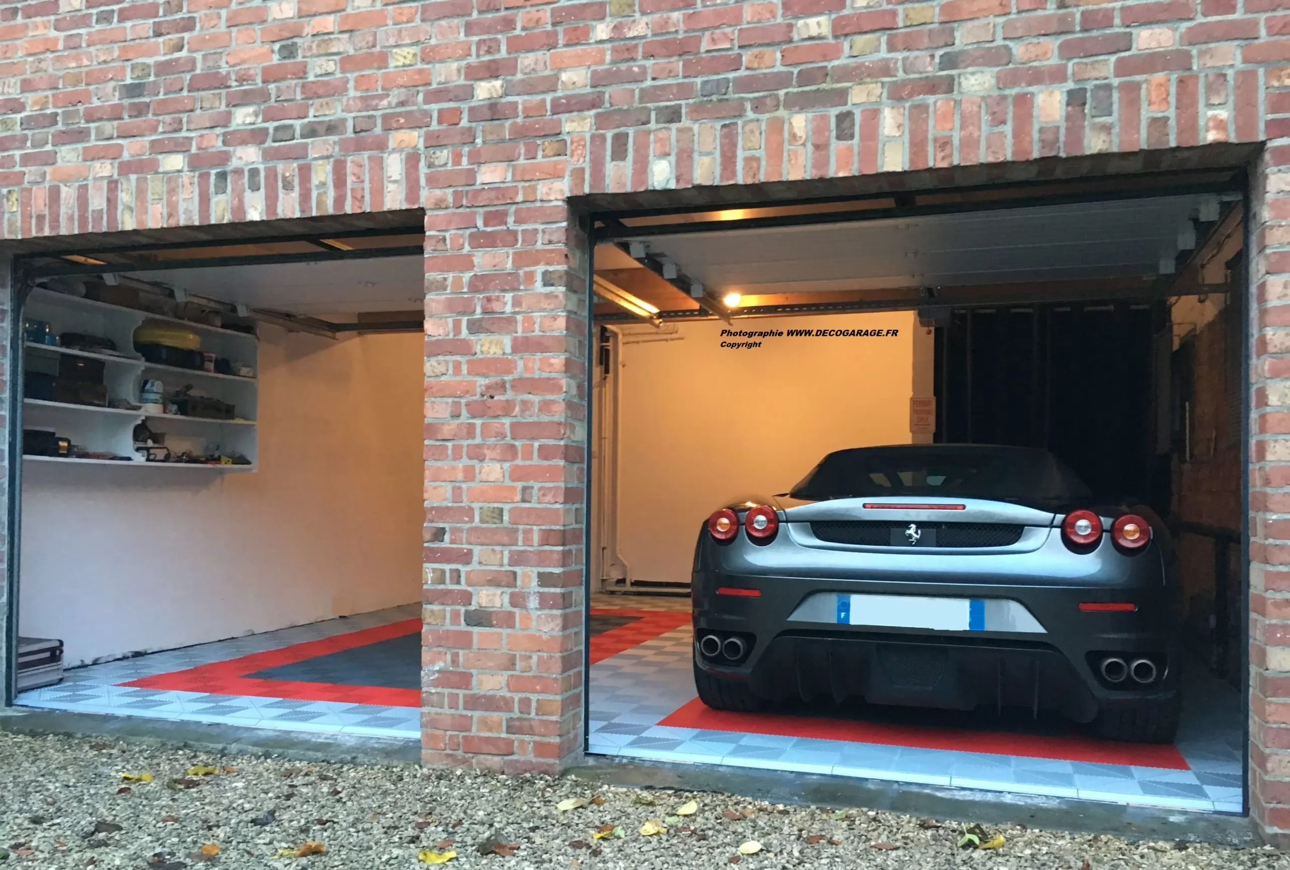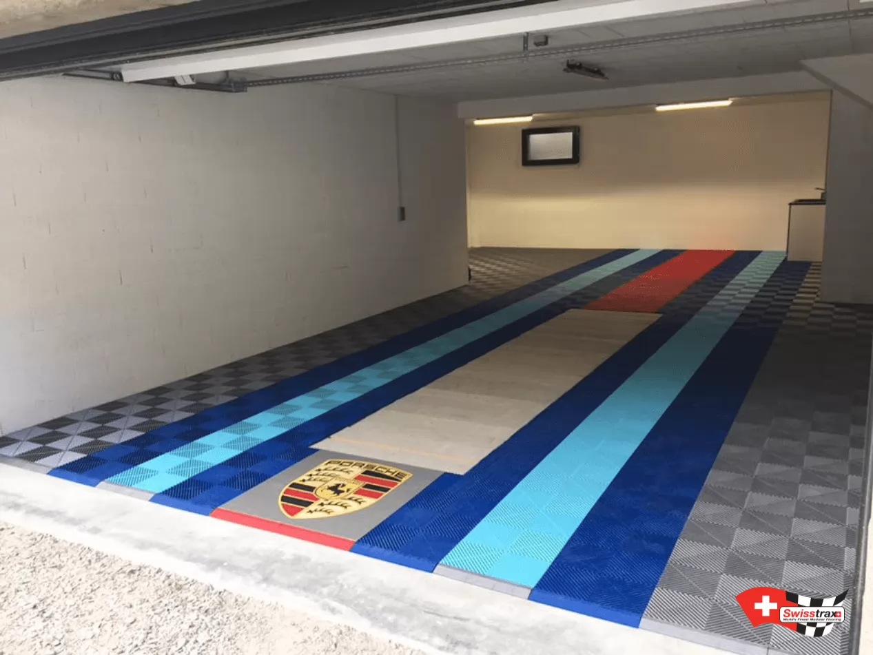 Dieses Fahrzeugpodium kann auch als Parkplatz in Ihrer Garage genutzt werden. Sie haben eine sehr große Garage und wollen nur den Platz für Ihr Fahrzeug schaffen? Die Modularität der Swisstrax-Platten erlaubt es Ihnen, den Raum und die Grösse Ihrer Wahl zu gestalten. Die Platten werden einfach zusammengesteckt. Für ein außergewöhnliches Design und einen sicheren Zugang zu Ihrem Fahrzeugraum werden Abschlusskanten empfohlen. Das Logo Ihrer Lieblingsmarke oder Ihres Lieblingsunternehmens kann auch auf Ihrem Boden angebracht werden.