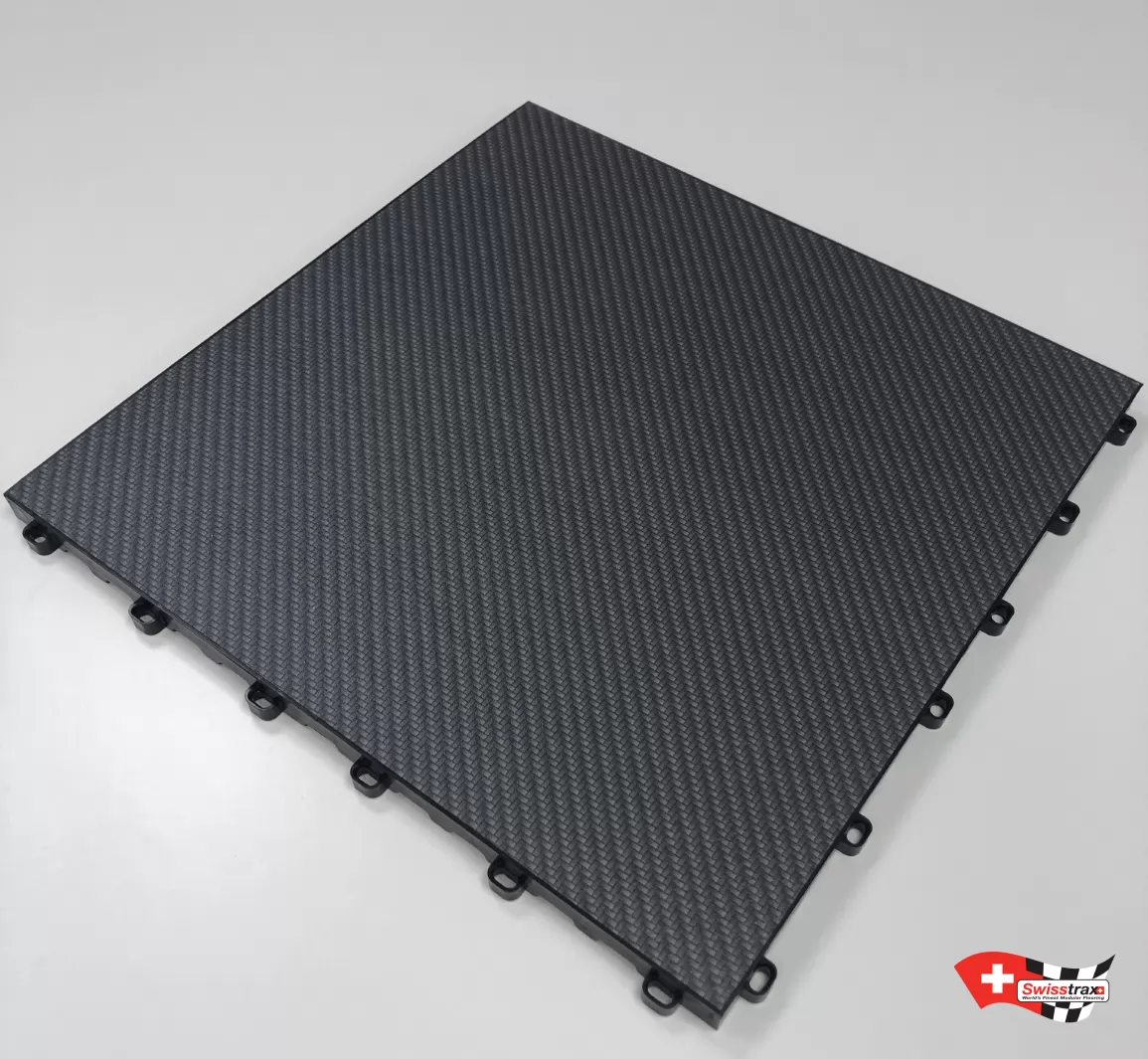Wir schlagen ihnen vor, dass Sie Ihre Garage oder Ihre Ausstellung mit einem des prestigeträchtigsten Materials verschönern, welches aus dem Motorsportwettbewerb resultiert! Carbon wird häufig von großen Herstellern verwendet, die bereits die Innen- und Außenbereiche ihrer Fahrzeuge ausstatten. Der aufsteckbare Boden mit Carbon-Effekt von SWISSTRAX wird Ihre Umgebung verführen und Ihren Ausstellungen einen qualitativ hochwertigeren Effekt verleihen!