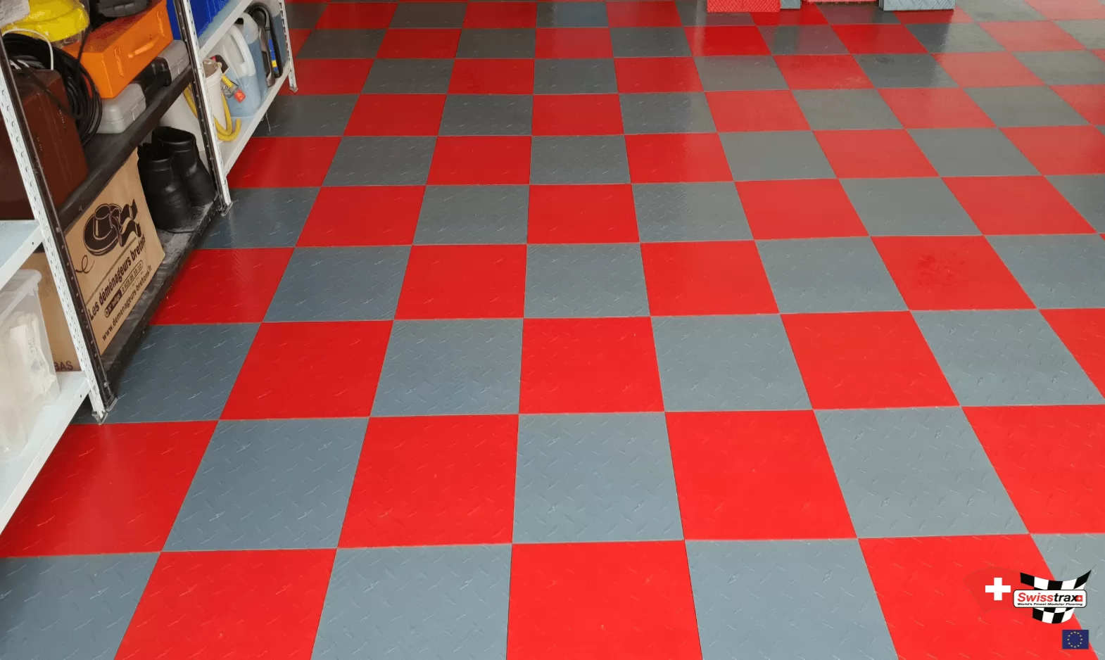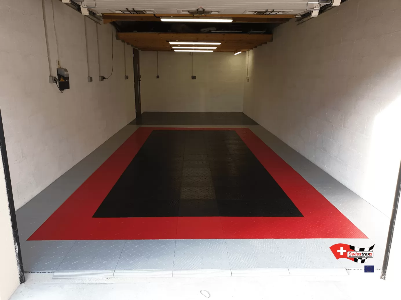 Alle Platten der Swisstrax-Reihe haben die gleichen Abmessungen. Sie können während der Installation verschiedene Plattentypen mischen. Mischen Sie die Farben der Platten, dank der verschiedenen verfügbaren Farben und integrieren Sie sogar Ihr Lieblingslogo. Die aufsteckbare Swisstrax-Bodenplatte aus Polypropylen ist sehr vielseitig.