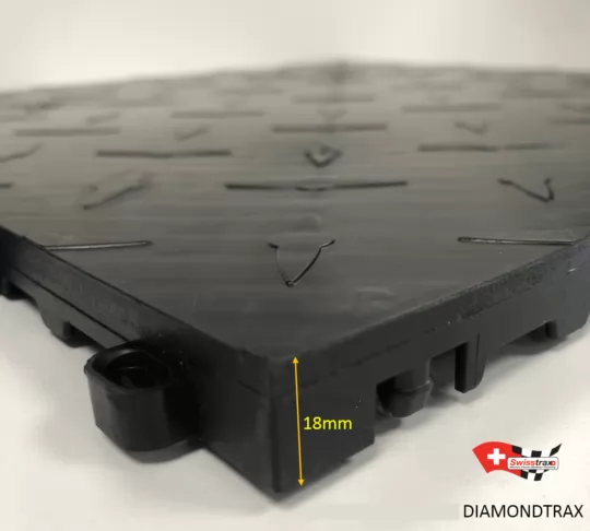 Diamondtrax-platten sind extrem widerstandsfähig und verwandeln Ihren Boden. Die starre Basis, das Rautenmuster und die gravierte Oberfläche schützen und verbessern gleichzeitig die Reibung. Die Reinigung ist dank der glatten und glänzenden Oberfläche der Platte einfach. Keine Spur von heißen Reifen auf Ihren Platten, auch nach langer Parkzeit. Die Reinigung ist wie die Wartung einer einfachen Fliese, jedoch ohne die Unannehmlichkeiten der Installation…