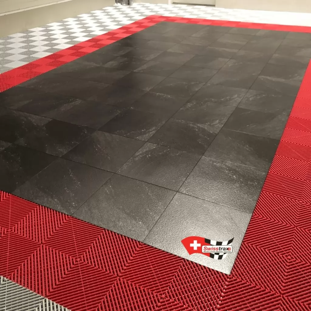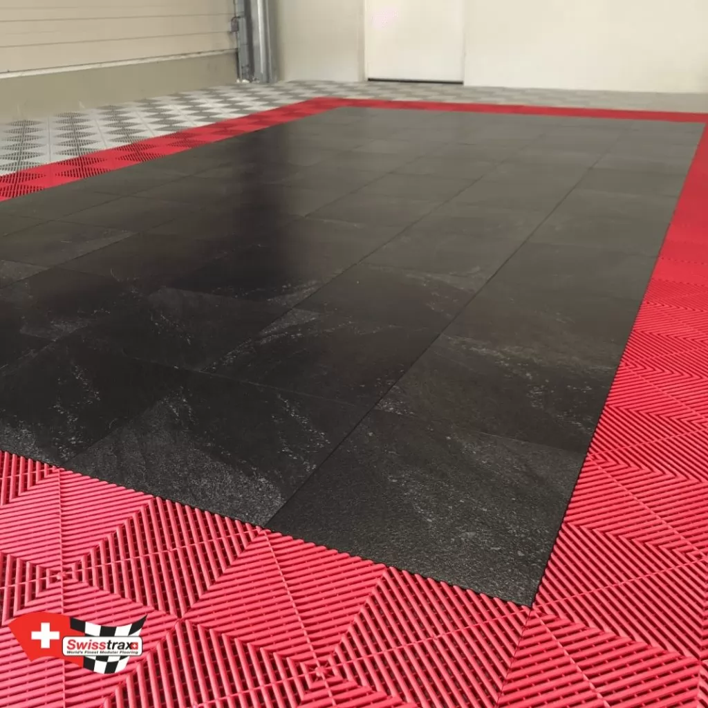 Wohn- oder professionelle Garagenböden, Ausstellungsböden, Veranstaltungsböden und SWISSTRAX-Clip-On-Produkte werden für viele Anwendungen installiert. Ein Garagenboden zum Renovieren? Genießen Sie den Komfort der Installation… Ein Showroom-Boden zu Erstellen? Nutzen Sie die schnelle Installation und schließen Sie nicht während der Arbeit! Einen Boden für den Messestand? Begrüßen Sie Ihre Kunden auf einen Designboden und verwenden Sie Ihren Boden bei jeder Ausstellung wieder! Die Installation ist sehr komfortabel. Sie befestigen Ihre Platten einfach mit einem einfachen Werkzeug: Ihren Händen, einem Paar Handschuhen, einem Filzstift, einem Cutter und einer Stichsäge für alle Schnitte.