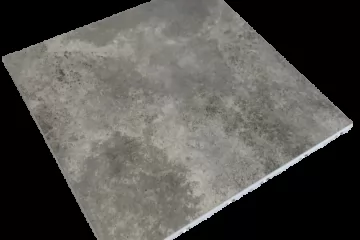 Ein zweiter Teil namens Einsatz ist das Design der Platte (Marmoreffekt). Dieses Finish ist in die Bodenplatten integriert und besteht aus Vinyl. Dieses Vinyl kann im Falle einer Wartung aus der Platte extrahiert werden. Sie sparen viel Zeit, wenn Sie eine Platte ersetzen müssen (+ -2 Minuten), die mit einer echten Fliese nicht zu vergleichen ist. Das Vinyl ermöglicht eine Feuerwiderstandsklassifizierung BflS1, die eine ausgezeichnete Beständigkeit aufweist.
