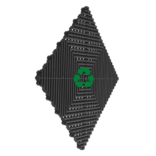 Recycelte ineinandergreifende Platten, Modell RIBTRAX ECO, eine neue Generation von umweltfreundlichen Bodenbelägen. Kennen Sie schon unser weltberühmtes Modell RIBTRAX PRO, das aus 100 % neuem Premium-Polypropylen besteht und zu 100 % recycelbar ist? Entdecken Sie die RIBTRAX ECO-Platten aus 100% recyceltem Polypropylen, die noch umweltfreundlicher sind. Ein Produkt, das aus der Kombination der Forschungs- und Entwicklungsabteilung von SWISSTRAX Europa und SWISSTRAX USA entstanden ist. Nicht wegwerfen, sondern recyceln!