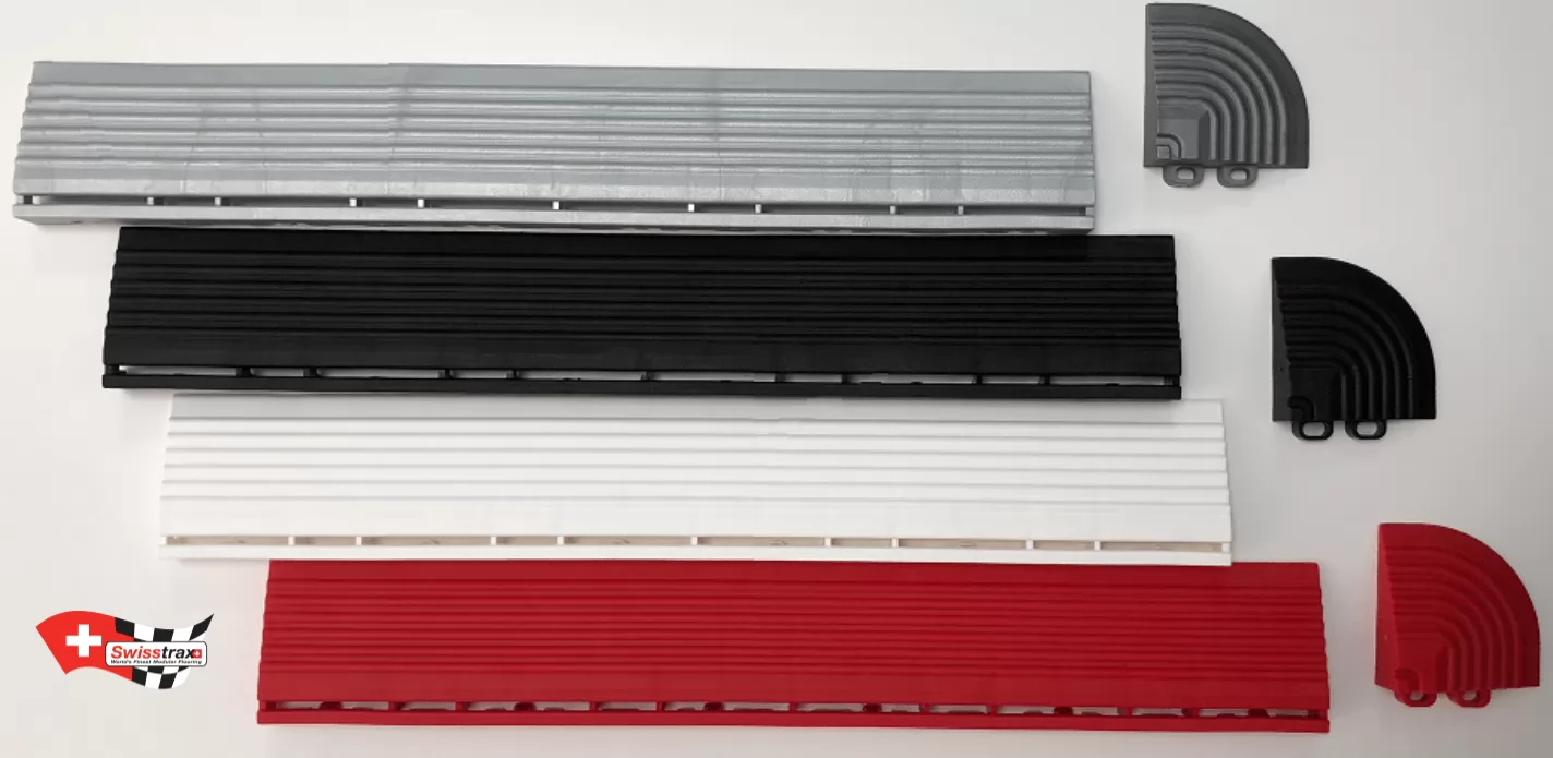Diese Kanten werden im Allgemeinen für Garagentore oder private Türen verwendet. Diese Kanten ermöglichen Ihnen einen sicheren Zugang zu Ihrem Garagenboden und für ein perfektes Finish! Für den Einsatz an Messeständen oder Ausstellungen stehen zusätzlich auch Ecken zur Verfügung. Alle Kanten und Ecken sind in allen Bodenplattenfarben erhältlich. Installation durch einfaches Aufstecken auf Ihre Swisstrax-Bodenplatten. Bei Bedarf verstellbare Kanten. Abmessungen: Länge 40 cm, Breite 6,2 cm und Höhe 1,8 cm.