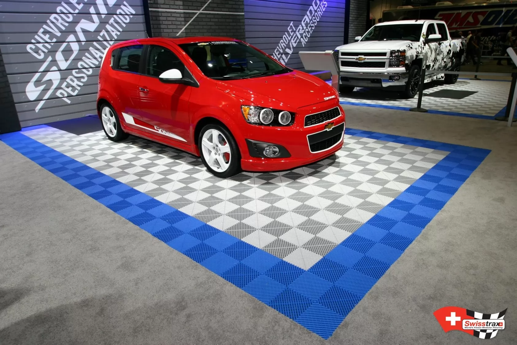 Mit den 20 verfügbaren SWISSTRAX-Farben können Sie Ihren Motorsport-Paddockboden auf die Farben Ihres Teams abstimmen. Mit den verschiedenen SWISSTRAX-Bodenplattentypen können Sie auch Hospitality-Bereiche, Pressebereiche, Technikbereiche etc. gestalten. Gehen Sie an die Grenzen, indem Sie Ihr Teamlogo auf Ihrem Boden integrieren. Alle SWISSTRAX-Platten sind 40×40(cm) gross und können miteinander verlegt werden, was sehr praktisch ist, um verschiedene Bereiche zu schaffen.