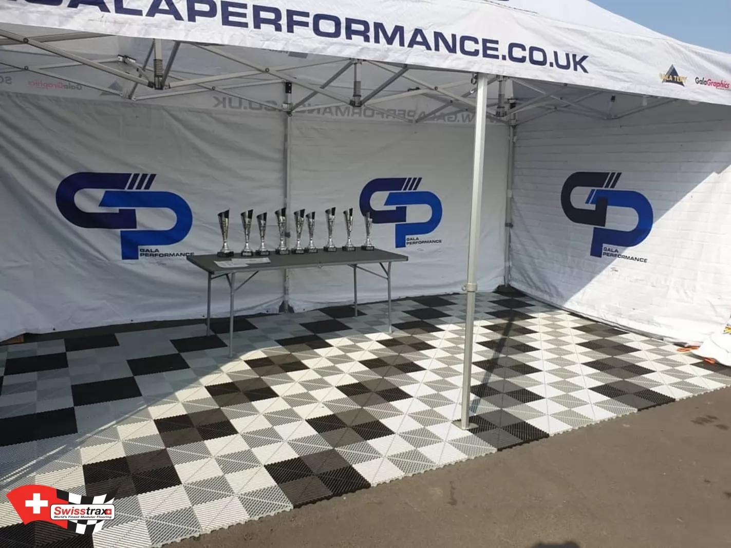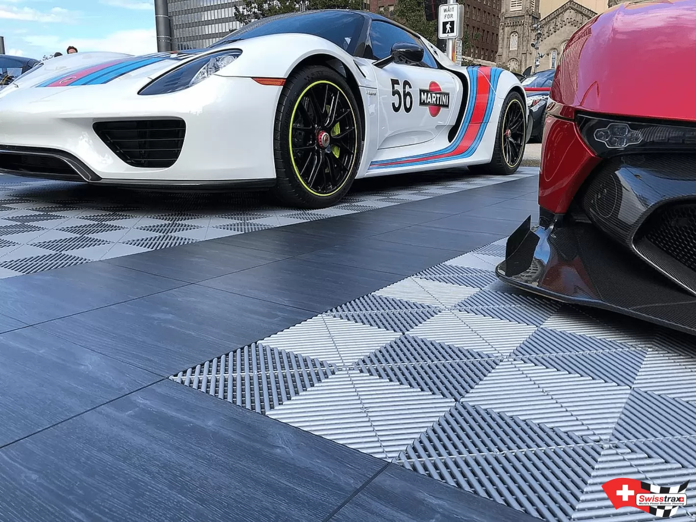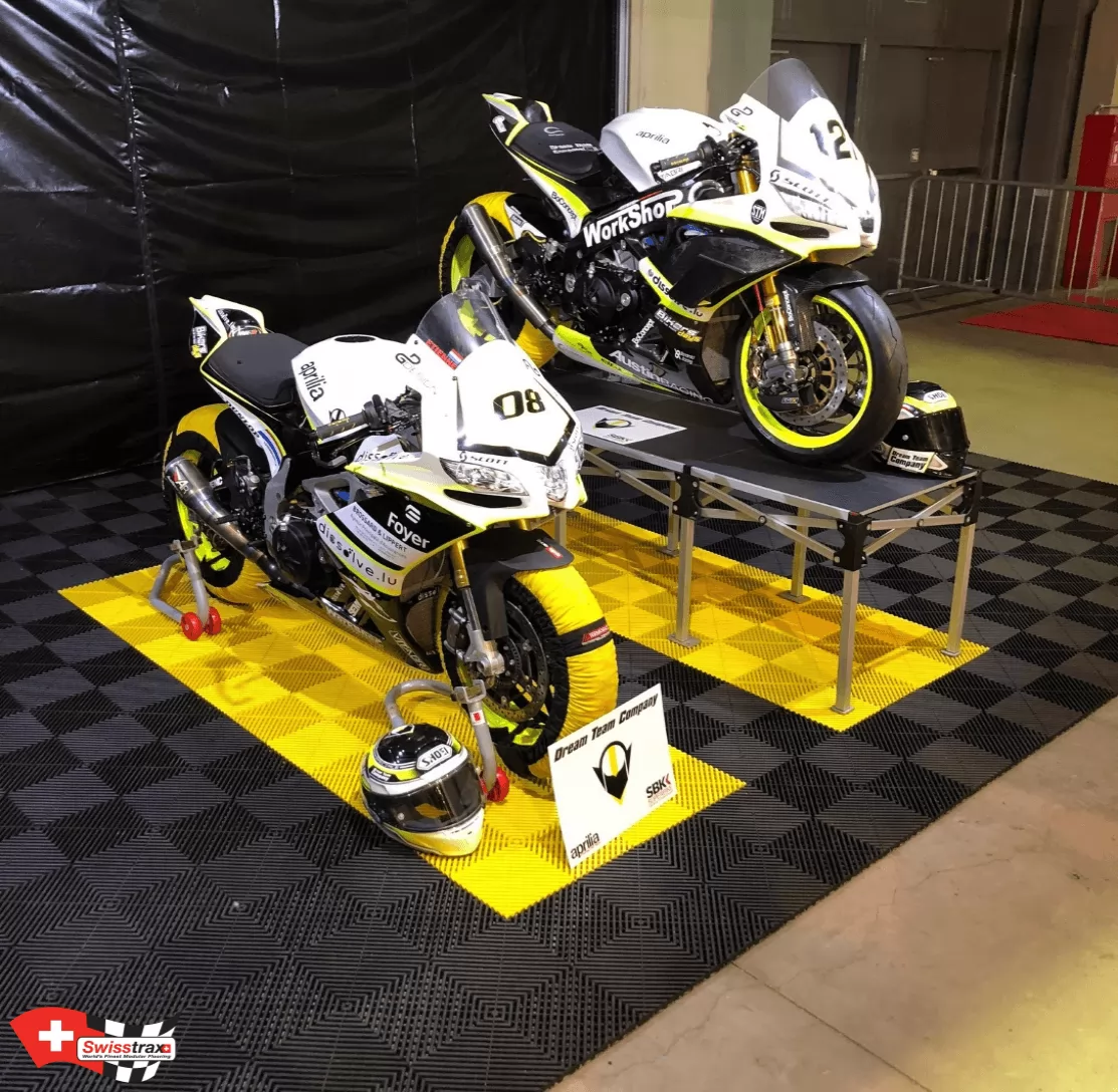 Paddock-Bodenbelag für Ihren Motorsport, wählen Sie den Premium-Rennboden SWISSTRAX. 20 verfügbare Farben, um Ihren professionellen Rennboden zu verwirklichen!