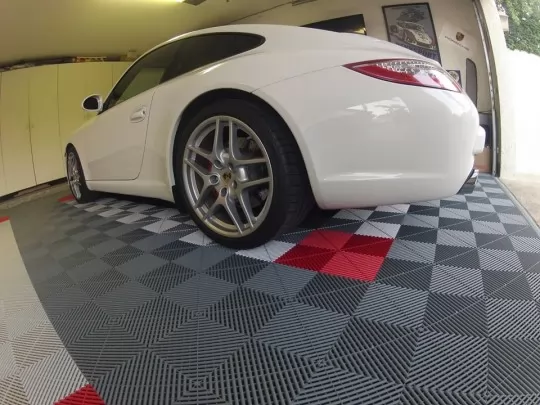 Swisstrax-Platten bestehen aus Polypropylen-Copolymer, einem natürlich rutschfesten Material, auch wenn es nass ist. Sichern Sie Ihren Garagenboden mit dem rutschfesten Swisstrax-Boden. Das perforierte Profil der Swisstrax-Garagenbodenplatten ermöglicht es, Ihre Füße auch bei Regenwetter trocken zu halten, wenn das Wasser durch die abfließenden Platten läuft.